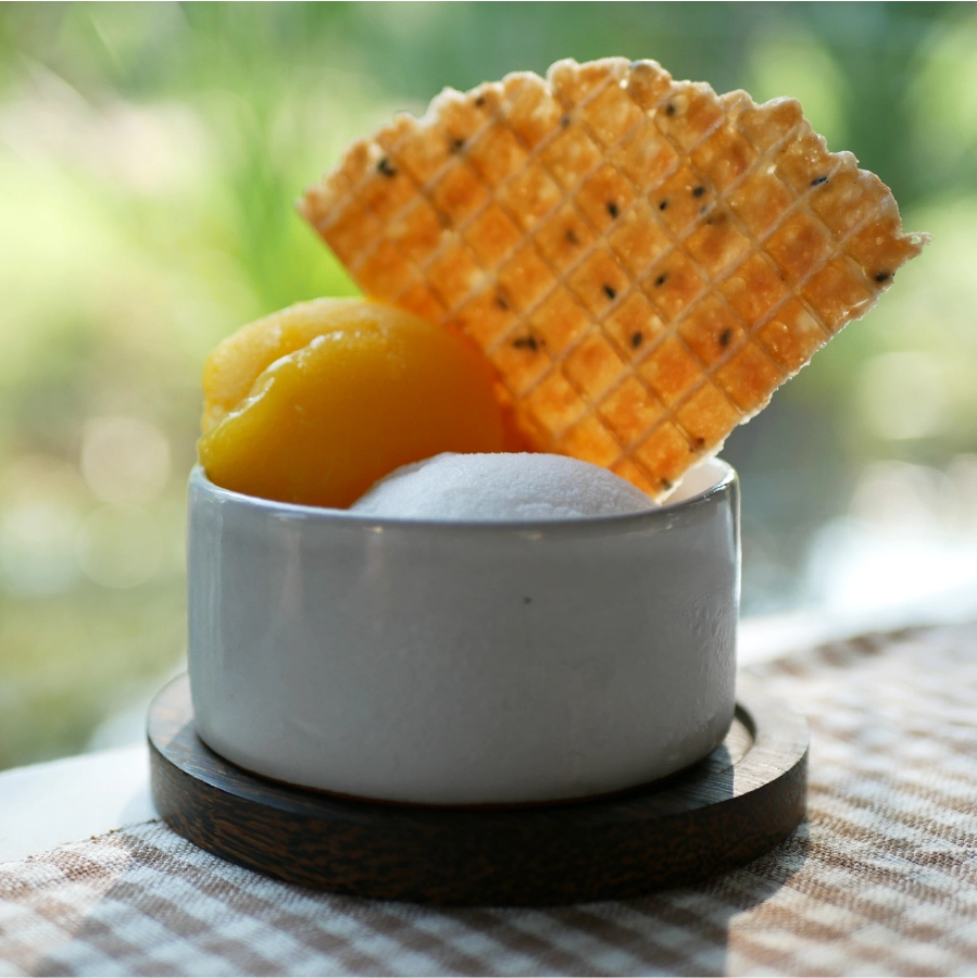 At Senteurs d’Angkor Workshop, you can enjoy a variety of homemade desserts. Try their delicious ice cream cones filled with natural, handmade ice cream in exotic flavours like Passion, Coconut, Mango, or Lime. We also offer freshly baked cookies in coconut or sesame flavours, perfect to pair with your favourite drinks.
