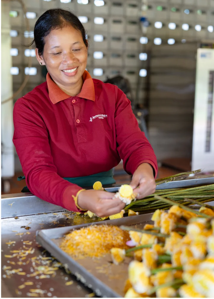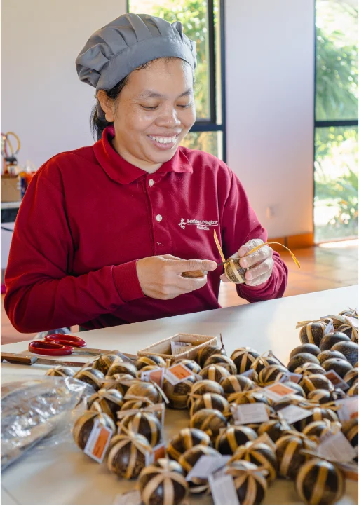 We believe in fair work conditions, meaningful employment and equal opportunities. Each product carries the story of the women who craft it, the care in every ingredient, the artistry in every design and the pride in every finished piece. By supporting Senteurs d’Angkor, you help create a space where women thrive, talents are nurtured and communities grow stronger.