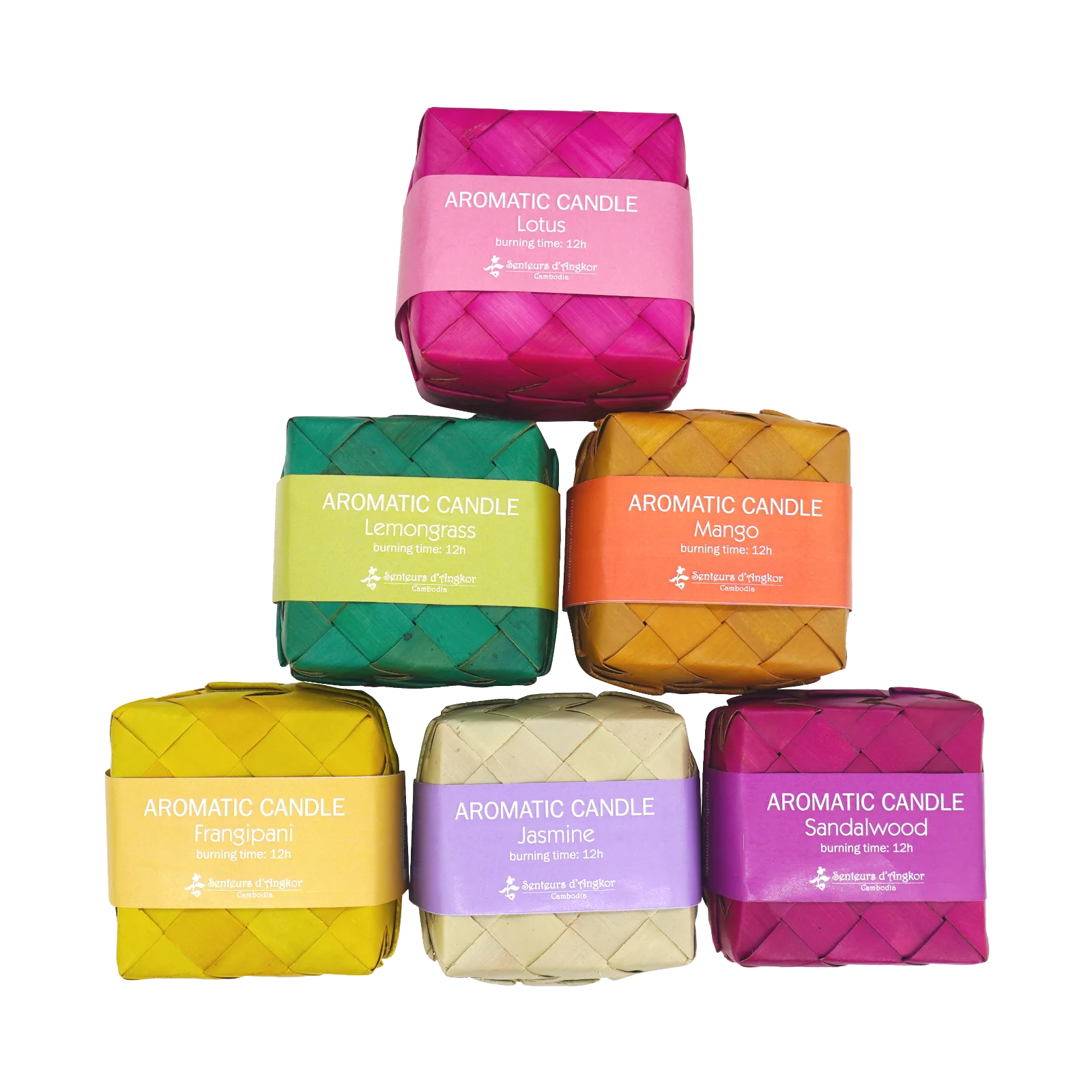 Handcrafted natural candles made from wax and infused with the finest essential oils or fragrances. Each scent reflects the essence of Cambodian nature, creating a calm and soothing atmosphere.