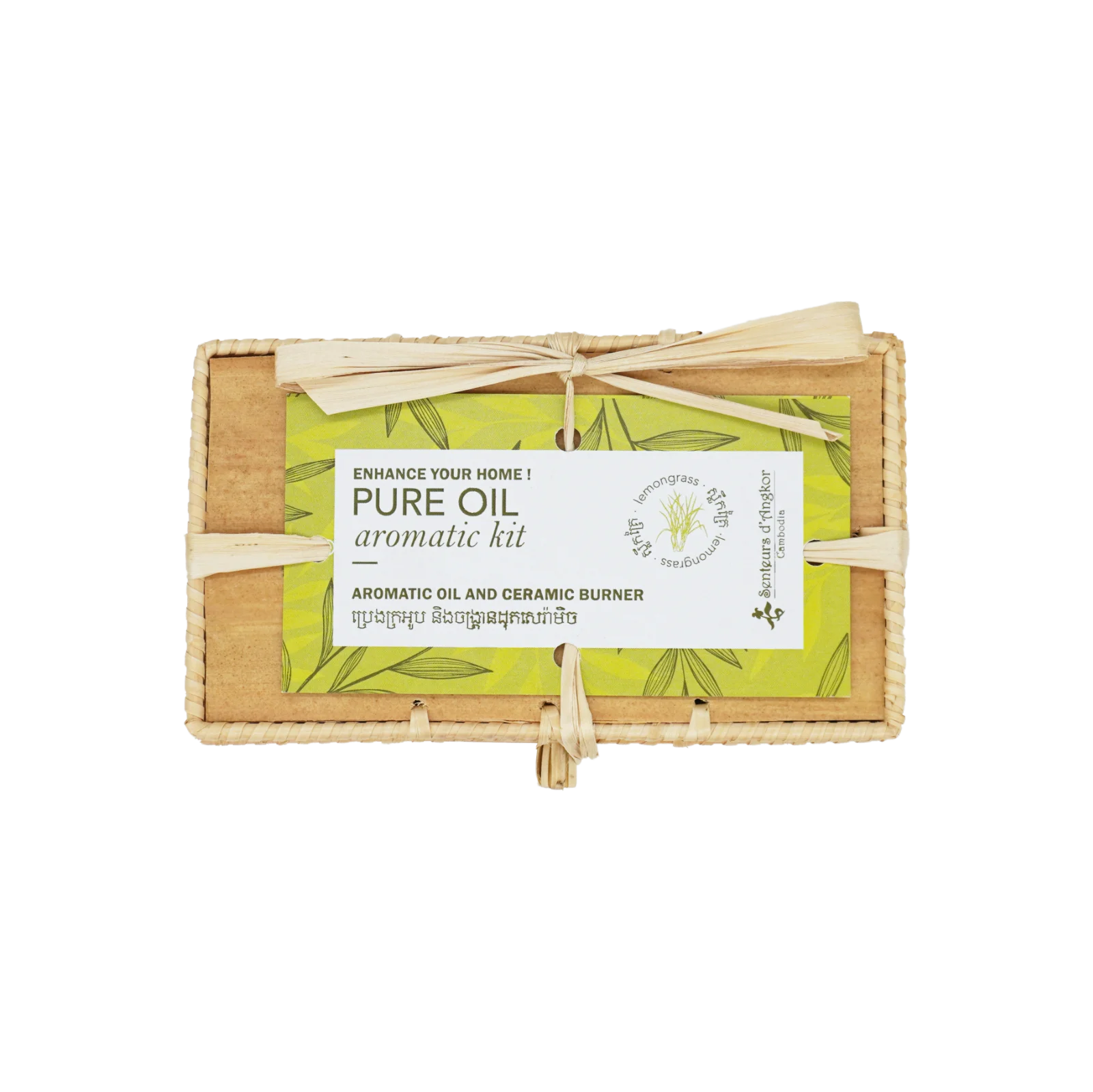 Aromatic oils paired with a beautifully crafted burner, designed to fill your home with soothing Cambodian-inspired fragrances. A few drops of Aromatic Oil will bring to your home, your bath, your cream or massage oil, a pleasant and captivating scent to awake your senses.