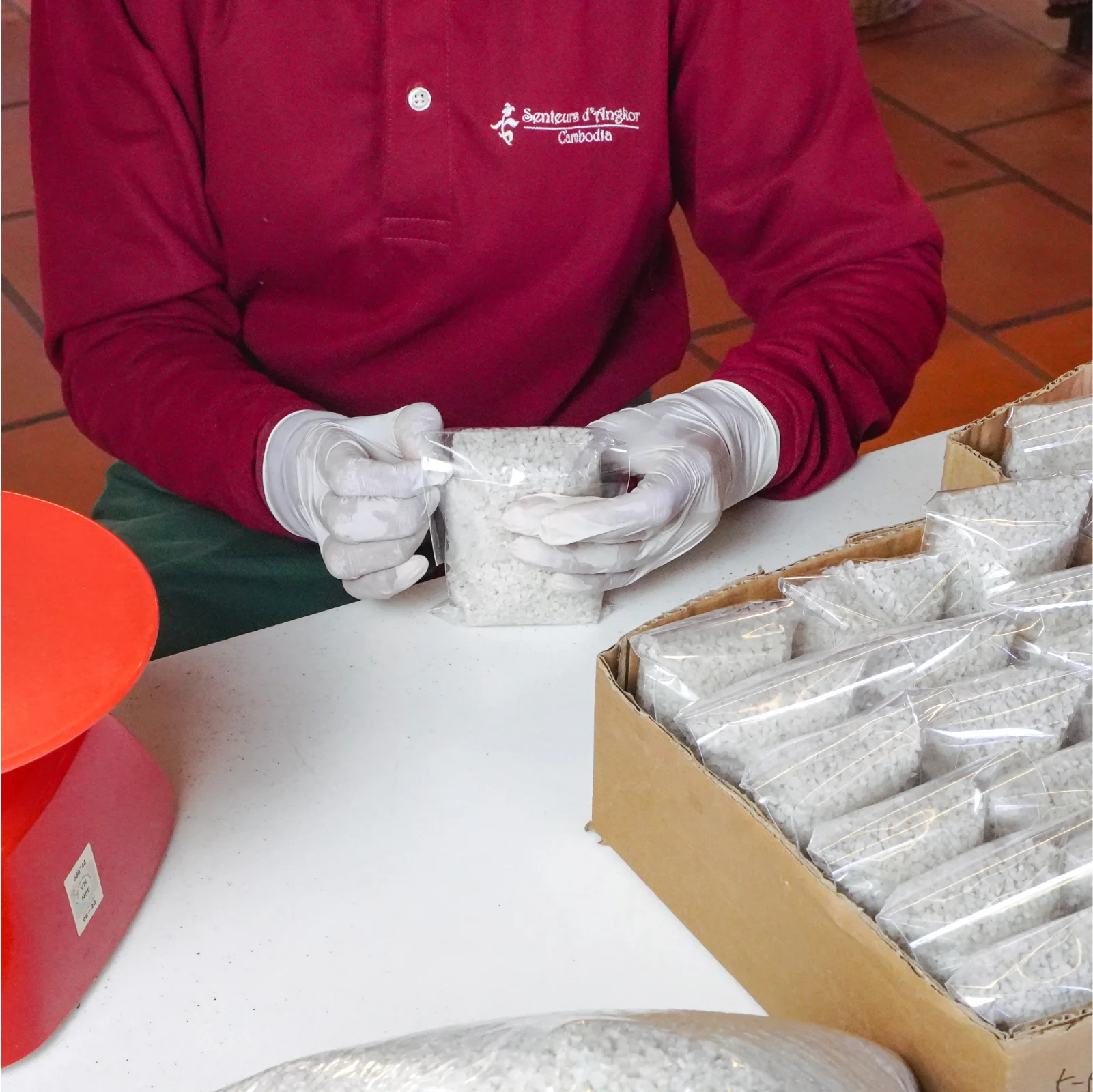 Senteurs d’Angkor bath salt is made from sea salt from Kampot, a city in the south of Cambodia, well-known for the quality of its salt.