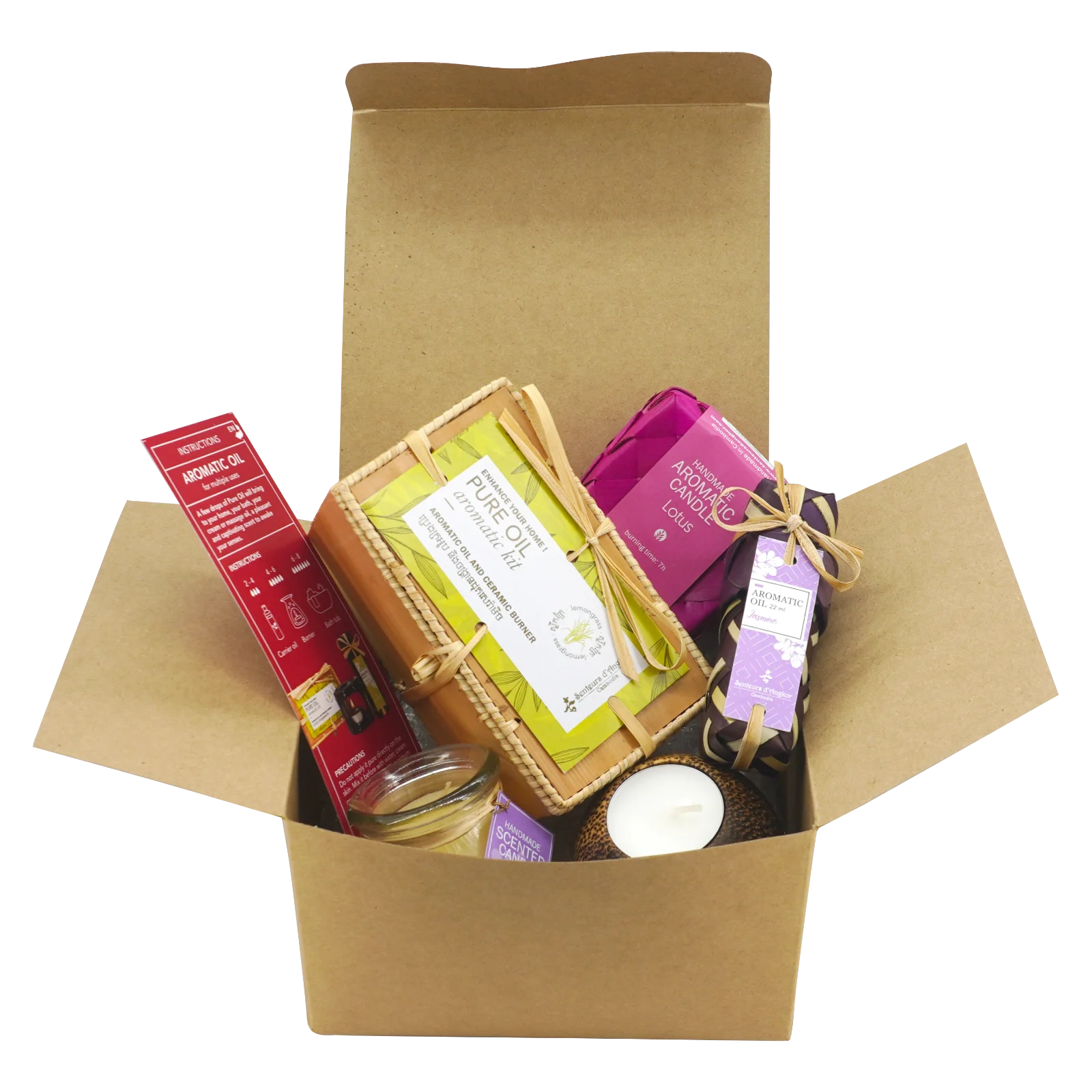 x1 lemongrass aromatic oil kit with burner. Aromatic oils paired with a beautifully crafted burner, designed to fill your home with soothing Cambodian-inspired fragrances. A few drops of Pure Oil will bring to your home, your bath, your cream or massage oil, a pleasant and captivating scent to awake your senses. |