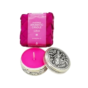 x1 lotus candle in silver box. Handcrafted natural candles made from 100% natural wax and infused with the finest fragrances. Each scent reflects the essence of Cambodian nature, creating a calm and soothing atmosphere. |