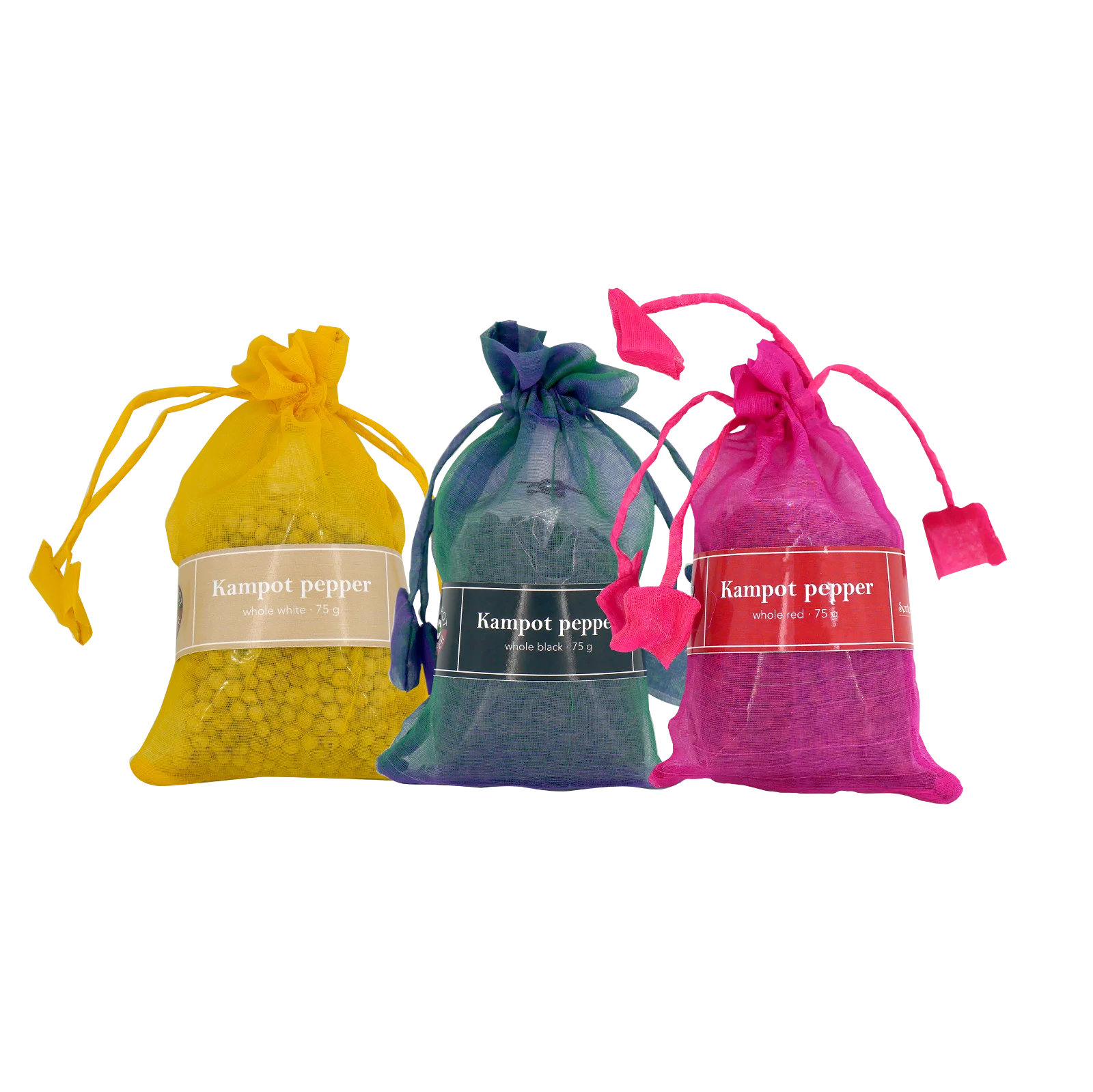 Kampot Pepper has been renowned for decades as one of the best peppers in the world. It develops an enthralling aroma, strong, delicate and aromatic. It is grown, produced and sold in green, black, white and red varieties, all from the same plant. The climate of Kampot Province offers perfect conditions for growing pepper. Moreover, the quartz content of the soil helps to give its unique terroir. As one our best sellers, it is a perfect gift and/or souvenir from Cambodia.