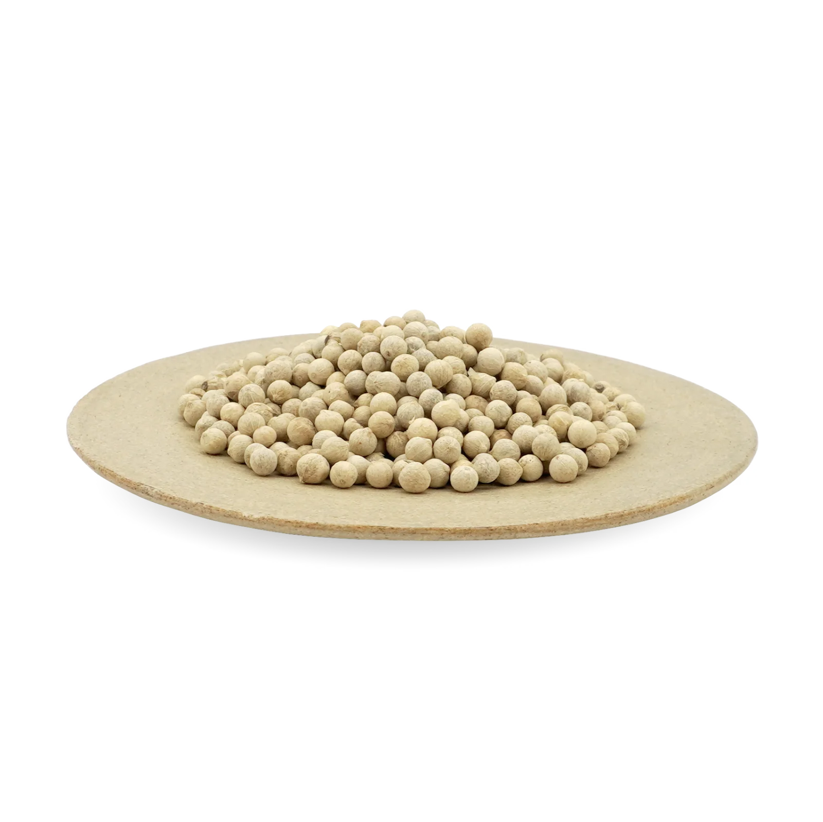 Kampot pepper in smok 50g, whole white x1 Kampot white pepper 50 g is obtained by soaking the red berries in water for a few days. It develops a delicate aroma that adds a touch of spiciness to any dishes.