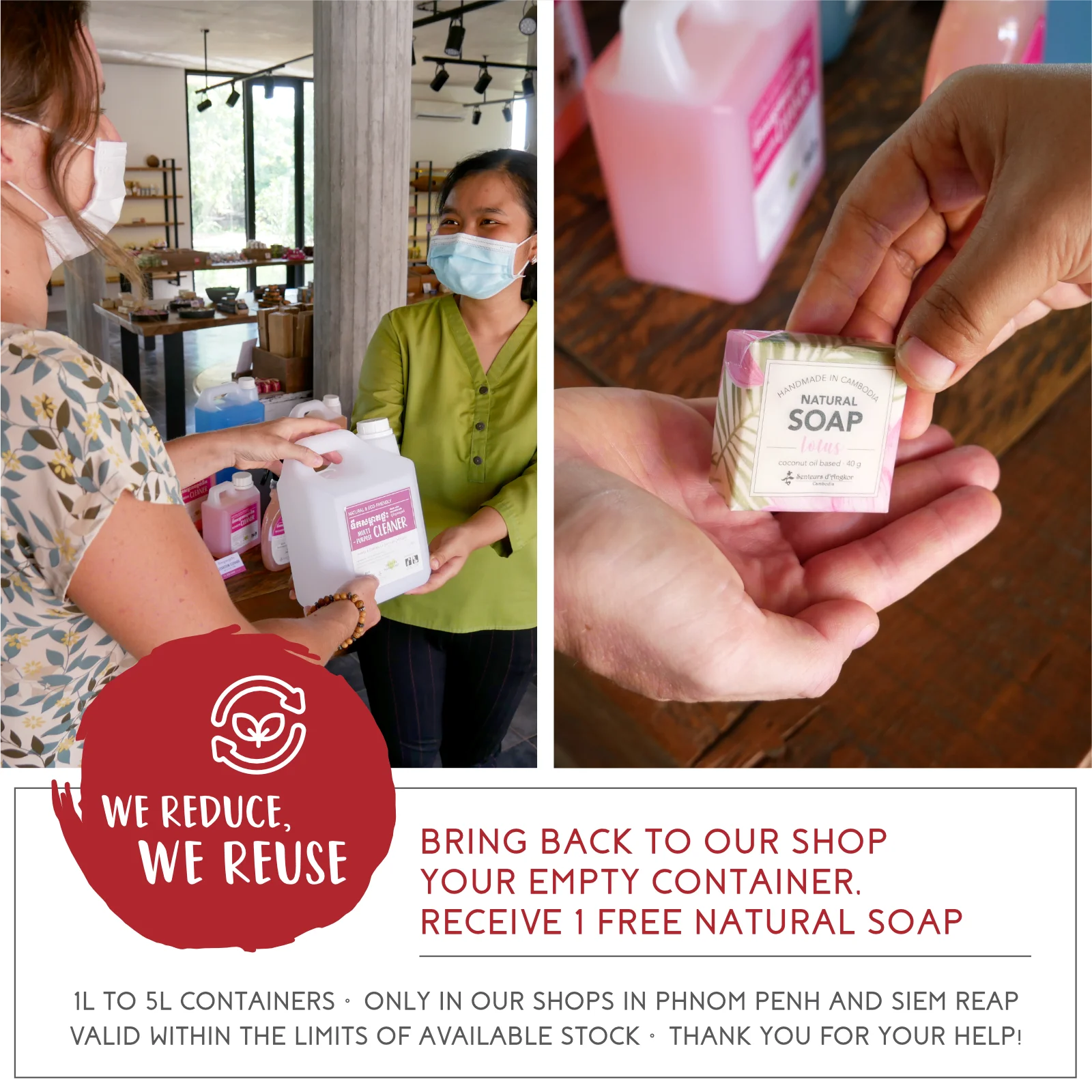 Ingredients: lemongrass hydrosol, water, distilled vinegar, soap paste, ethanol, lauryl glucoside, jasmine fragrance, xanthan gum, citric acid.