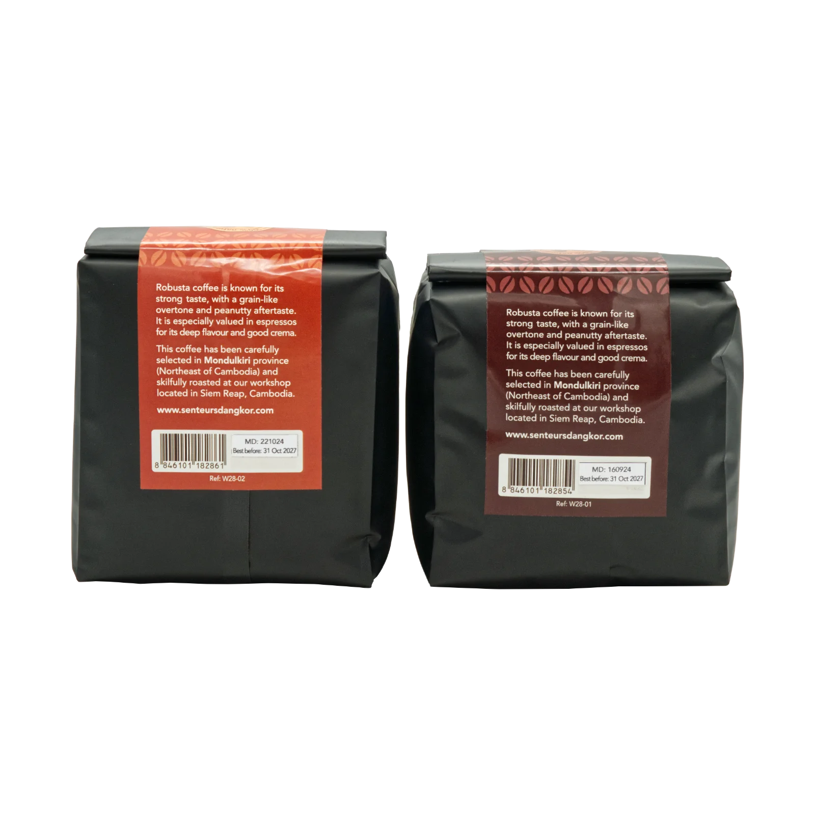 Rich, aromatic ROBUSTA coffee from the highlands of Mondulkiri, skilfully roasted and ground by Senteurs d’Angkor in Siem Reap. Bold, full-bodied, and authentic — the true taste of Cambodian coffee heritage.