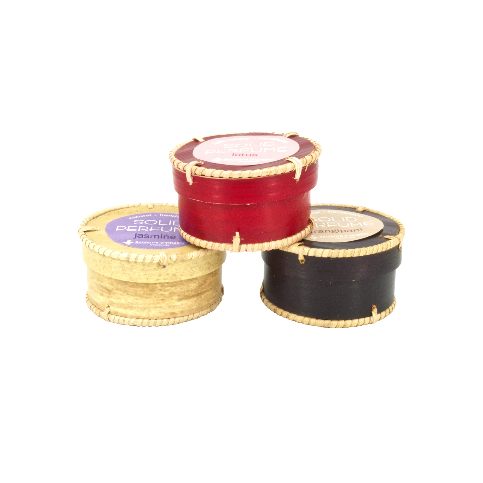Our Solid Perfume is crafted with beeswax, vegetable oils, delicate fragrance or essential oils, providing a gentle and enduring scent without the use of alcohol. Encased in a beautifully handcrafted palm box, it serves as both a functional and decorative piece. Ideal for on-the-go use, it allows for easy application to pulse points, leaving a delicate fragrance that lasts throughout the day.