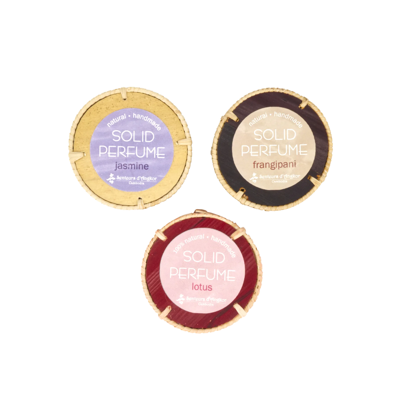 Jasmine solid perfume is amazing! Its long lasting, delicate smelling and not overpowering. Solid texture non greasy or skin irritating. BEST scent of Jasmine perfume I have ever used or smelled. Wish I had several more instead of one. Bought this in September 2023 while on vacation in Cambodia. Customer service was friendly and very informative