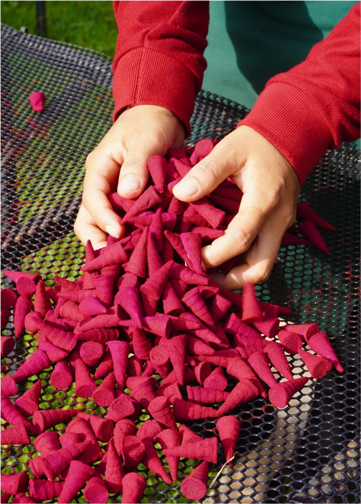 The journey of our Kapok tree incense begins in the heart of Cambodia, where artisans harvest the bark sustainably. The bark is carefully processed and blended with natural resins and essential oils, then hand-rolled into cones. This meticulous process preserves the rich aroma and ensures a slow, even burn, releasing the distinctive sweet, woody fragrance that Kapok tree incense is known for. Each cone is a product of patience, skill, and generations of traditional knowledge.