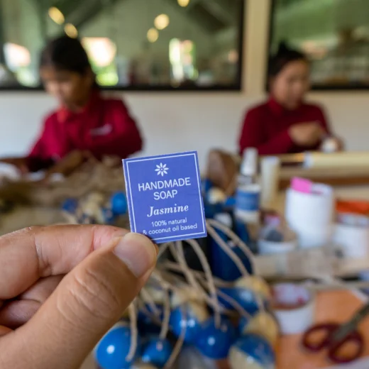 Through the different stations of our Workshop, you will discover how our artisans make by hand: soap with coconut oil, natural cosmetics, subtly scented balms, aromatic candles, but also natural packaging that we call Smok and Krebei Riel boxes.